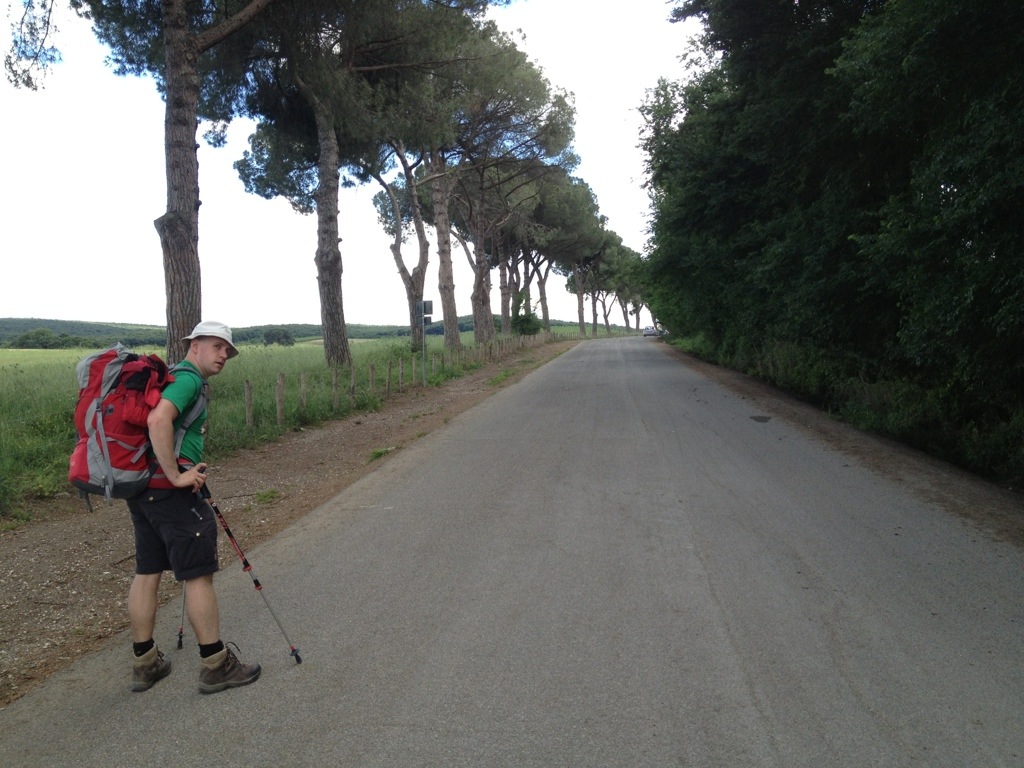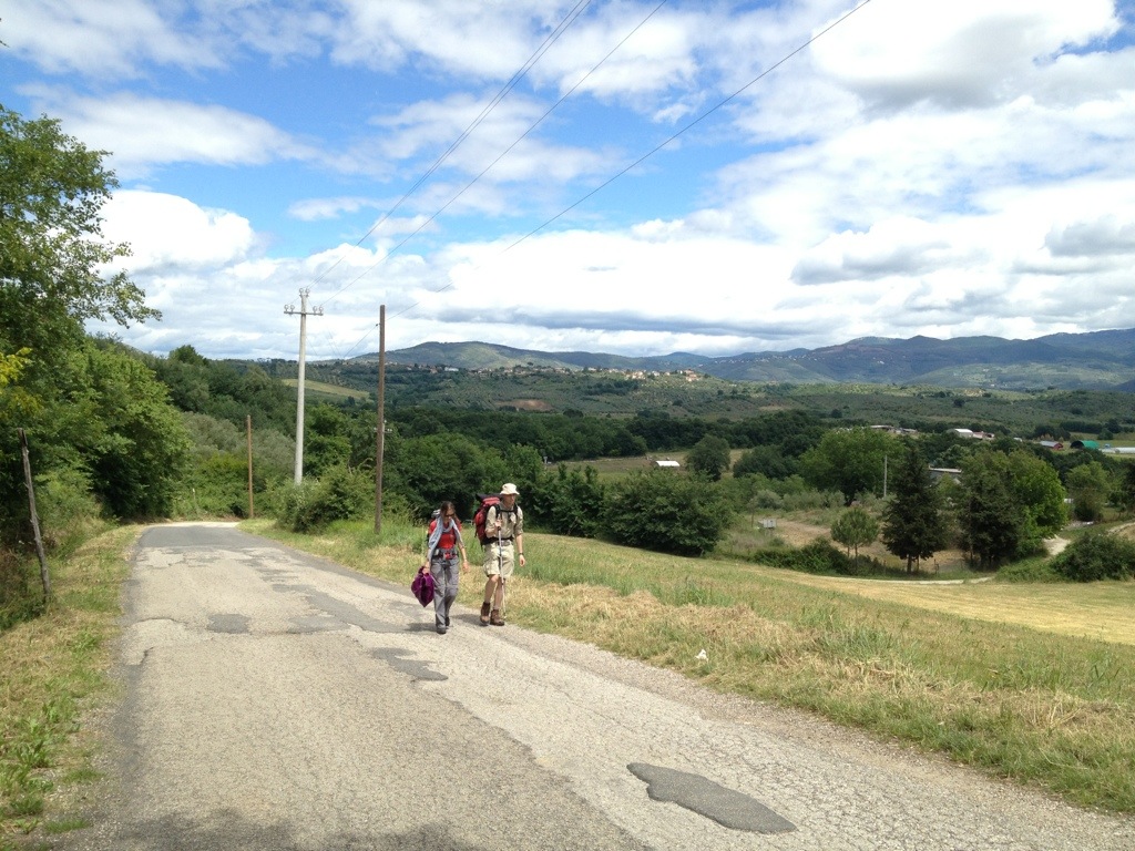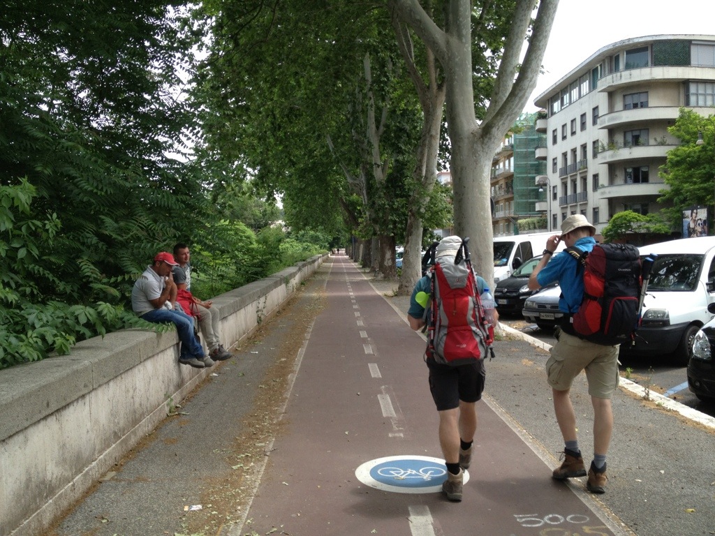 Three pilgrims ahead, getting close to Rome