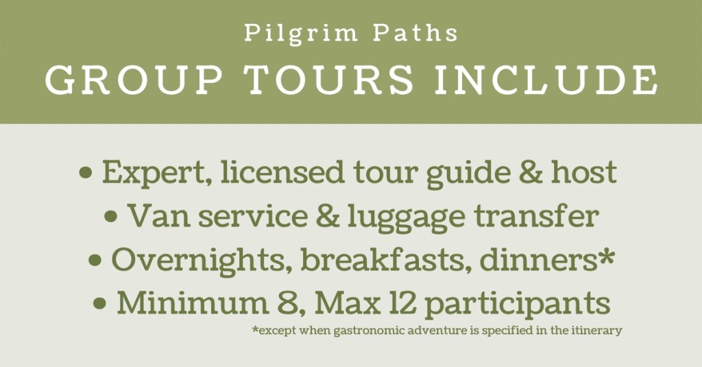Each group is limited to 15 pilgrims, ensuring a friendly and supportive walking community. You’ll enjoy guided insights into local history and sacred sites, delicious regional meals, and time each day to walk at your own pace.